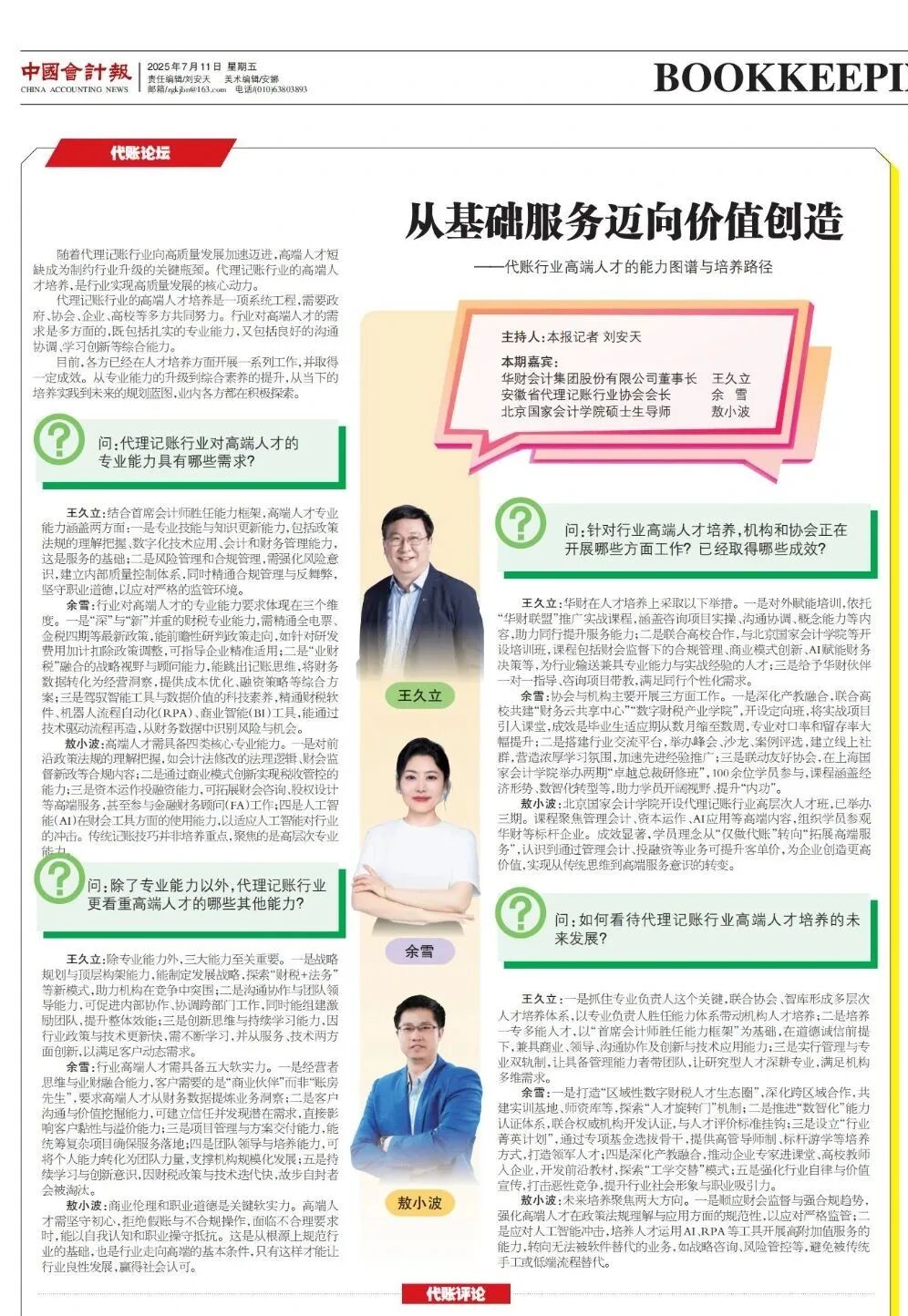 【协会头条】我会会长余雪接受《中国会计报》采访:从基础服务迈向价值创造——代账行业高端人才的能力图谱与培养路径